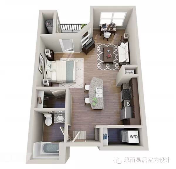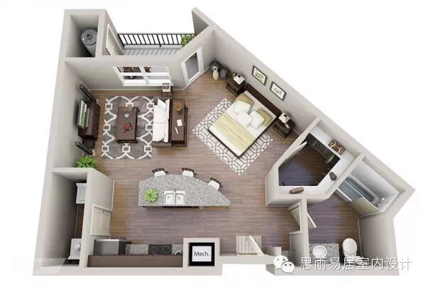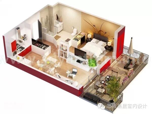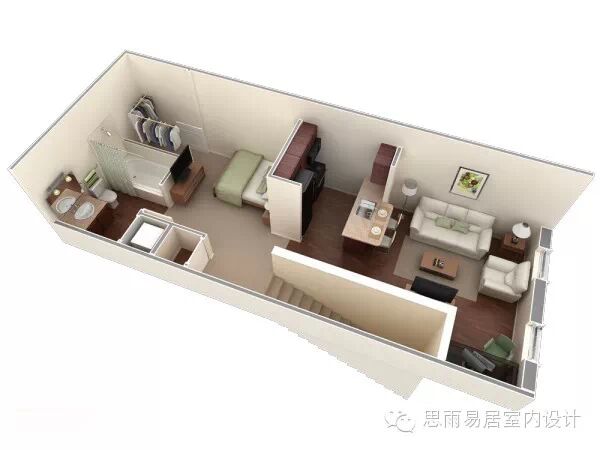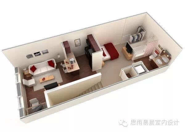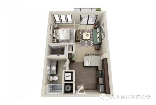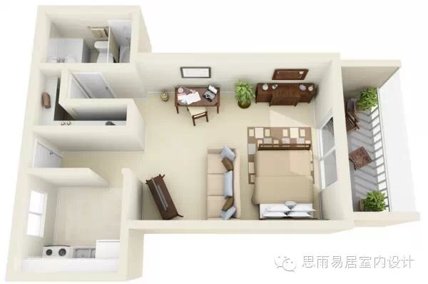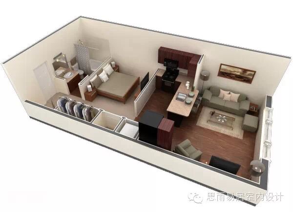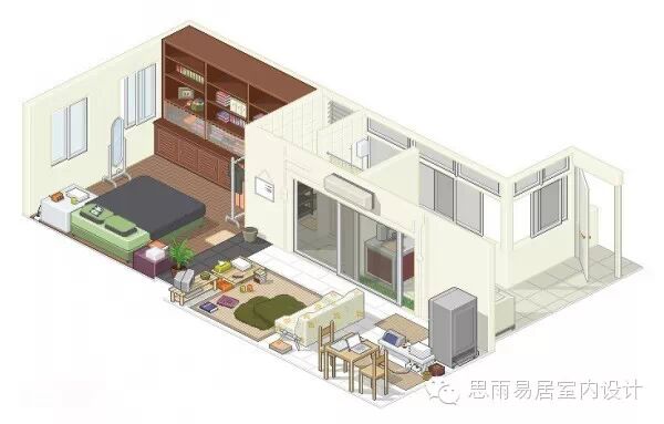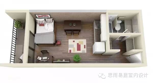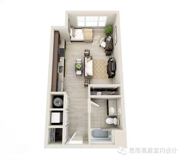 ★这个39平方米的房间,感觉已经颇为高档。这个是在比较细长的狭小户型进行设计,甚至还带了阳台,一目了然!
